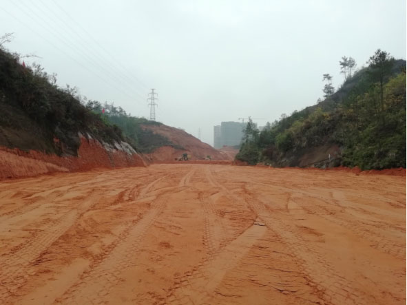 本工程所處區(qū)域地勢(shì)較為起伏,山丘林立,沿線(xiàn)主要為山地、魚(yú)塘、耕地、林地、場(chǎng)平地及局部民房等。相交道路除虎民路、環(huán)城路為現(xiàn)狀道路(金山大道在建)外,其他道路均為規(guī)劃道路(未建)。