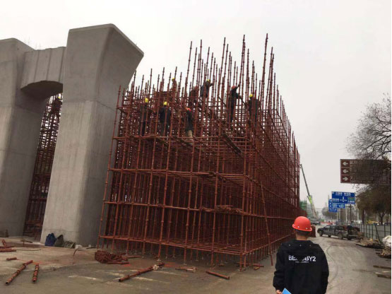 本項目全長1204.559m,其中橋梁全長684m,上跨武陵山大道節(jié)點(diǎn)274m,(4跨:55m+82m+82m+55m),為變高度全鋼箱梁;上跨天崇路節(jié)點(diǎn)橋梁110m(3跨:30m+50m+30m),為變高度預(yù)應(yīng)力混凝土連續(xù)梁;西側(cè)引橋長300m(10跨:10×30m),為等高度預(yù)應(yīng)力混凝土連續(xù)梁。子午橫斷面為50m,橋梁橫斷面為17.5m,該道路為城市主干道,雙向8車道,設(shè)計車速50km/h,橋梁使用年限100年,車行道采用瀝青混凝土路面,設(shè)計合理使用年限15年。