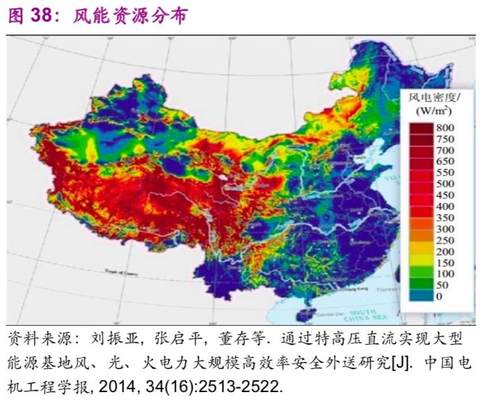 中國能源資源在地區(qū)之間的不平衡分布帶來了跨地區(qū)之間的能源輸送需求,例如“西電東送”“西氣東輸”。以水力資源為例,中國西部12個省的水力資源約占全國總量的81.46%,特別是西南地區(qū)的云、貴、川、渝、藏5個省占全國總量的66.70%。風能、太陽能同樣呈現(xiàn)西部多于東部的現(xiàn)象(圖38、39)。